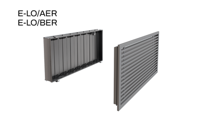 02.207.00500.0200.AP000: E-LO/BE grille, L = 500 mm x H = 200 mm, anodized aluminum. Attached with latches.