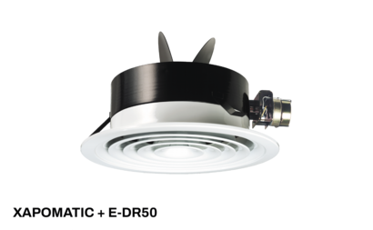The XAPOMATIC motorization is mounted on a collar-bridge that facilitates the connection to a flexible duct.